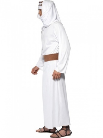 Kostým arabského bojovníka se skvěle hodí na karneval či na tématickou párty. Součástí kostýmu je bílá róba, šátek na hlavu s hnědou čelenkou a hnědý pásek.
