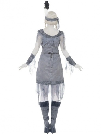 Originální dámský kostým, který obsahuje šedé šaty s návleky na ruce a šedou indiánskou čelenku. Bezvadná volba na strašidelný, zombie nebo halloweenský večírek.